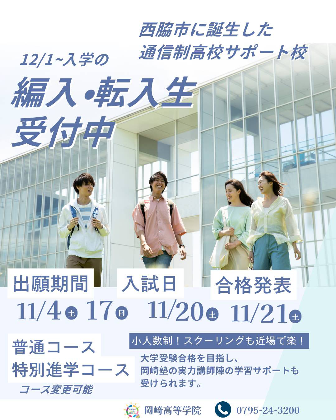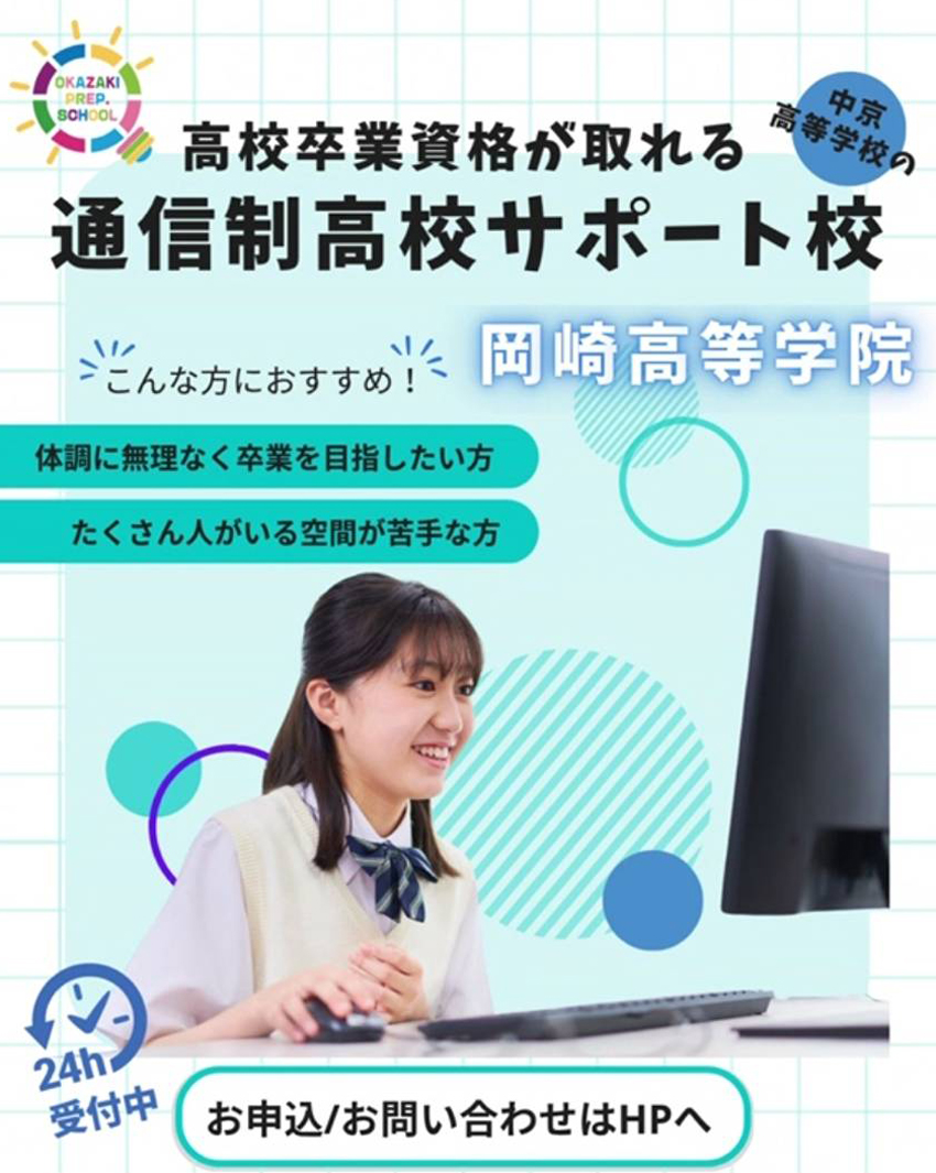 岡崎塾では、通信制の高等学院「岡崎高等学院」を運営しています。